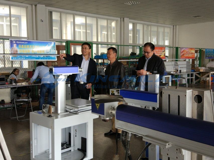 上圖:合作伙伴參觀金米蘭激光打標機車間